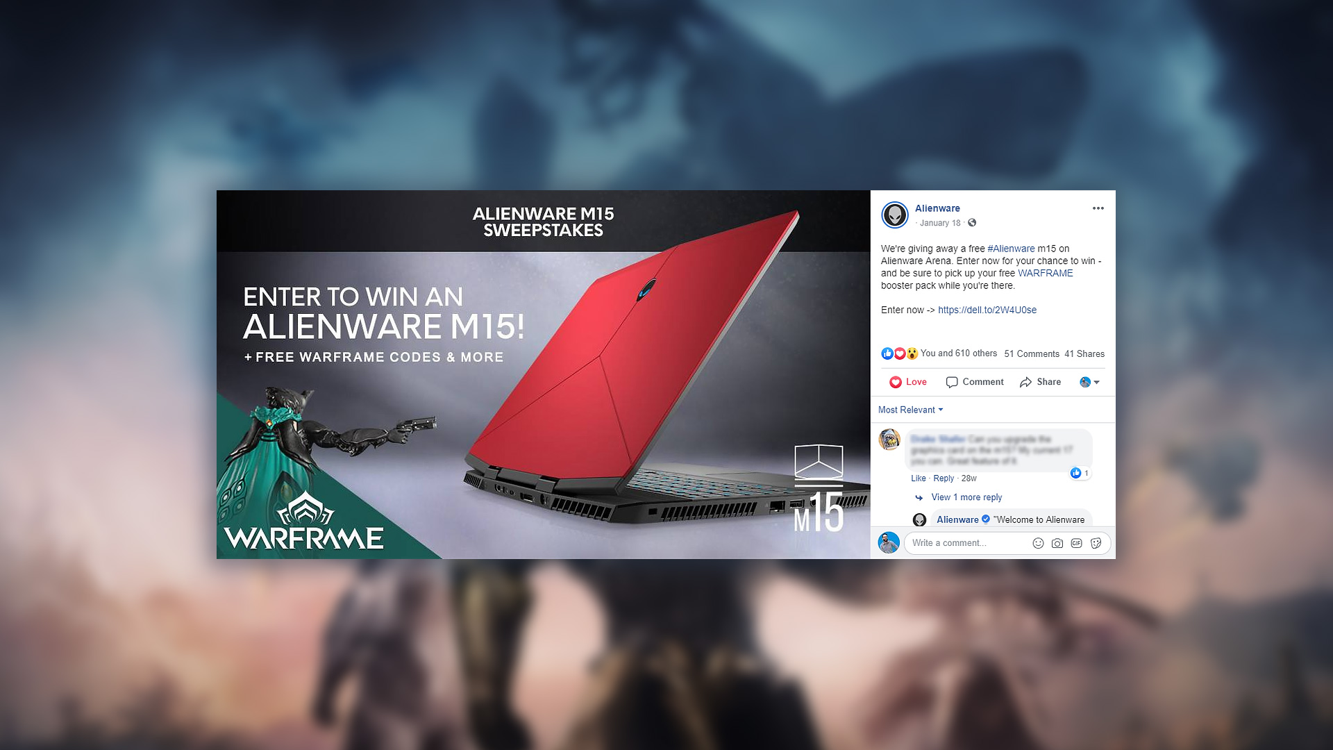 Combining Warframe and an Alienware prize package into a tentpole promotion, we were able to create in-bound funnels across social media into the AWA gaming hub for exponential engagement.